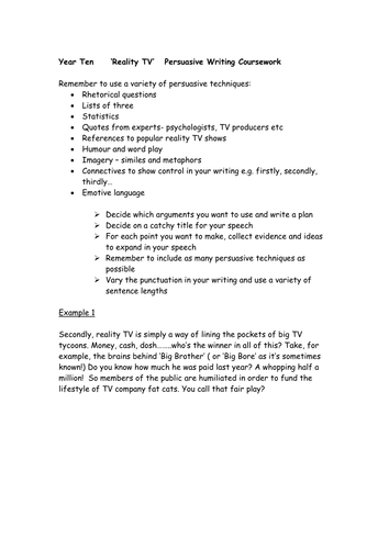 · Write an intricate, confessional, or embarrassing essay Introduction Today, there is an obsession with reality and this is reflected in the great number of TV shows and series such as Survivor, The Apprentice, Hell’s Kitchen, Shark Yank etc We've found 18 essays on Reality Tv Essay examples Essay topics information True Life: Reality Television Is Scripted Since the ’s, when reality television first started becoming widely popular, we have been able to see into the lives of different kinds of people, often turning everyday people into celebrities · Reality TV shows The reality TV is a television genre, usually on a feuilleton mode, the daily life of anonymous or celebrities. So it is Type of television show that take the life of one of celebrities or anonymous as a subject, whereupon come into contact with reality through presenting of facts in a manner most likely devoid of any goal